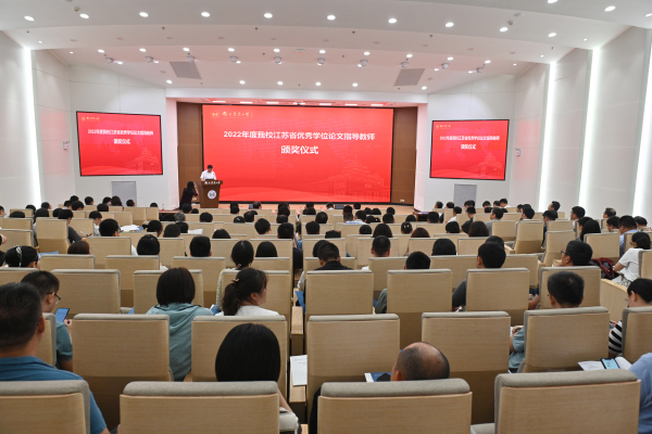 会议举行了2022年度校优秀研究生导师及导师团队、2022年度我校江苏省优秀学位论文指导教师颁奖仪式。研究生工作部部长姚志友宣读了获奖名单,胡锋、董维春共同为获奖者颁发了证书。