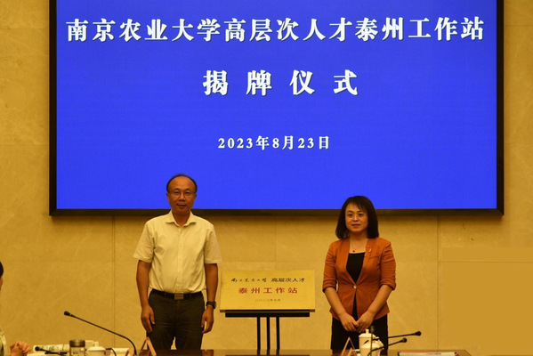 8月23日,ios版雷竞技官网与泰州市人民政府 “校地合作·科技强农”发展推进会暨ios版雷竞技官网高层次人才泰州工作站揭牌仪式在泰州市政府召开。ios版雷竞技官网副校长丁艳锋,泰州市副市长周小慧,市政府副秘书长、二级巡视员周天云出席了会议。丁艳锋和周小慧代表校地双方签署ios版雷竞技官网泰州研究院续建协议,并为“ios版雷竞技官网高层次人才泰州工作站”揭牌。会议由周天云主持。
