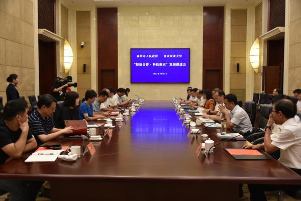 出席会议的还有学校校长办公室、研究生工作部、人力资源部、计财与国有资产处、科学研究院、社会合作处、农学院、资源与环境科学学院等职能部门与学院领导及泰州市农业农村局、科技局、财政局、农业科学院、农业开发区、农发集团等职能单位与地方领导。