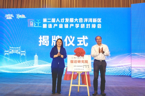 8月28日下午,副校长丁艳锋带队参加宿迁第二届人才发展大会洋河新区产学研对接会。对接会上,丁艳锋和宿迁市副市长武倩为南农大宿迁研究院揭牌、ios版雷竞技官网研究生院常务副院长吴巨友和宿迁市农业农村局局长王占武为宿迁研究院全国专业学位研究生实践教育特色基地揭牌、ios版雷竞技官网园艺学院院长陈素梅和宿迁市洋河新区党工委委员张克喜为宿迁研究院江苏设施园艺工程研究中心揭牌。