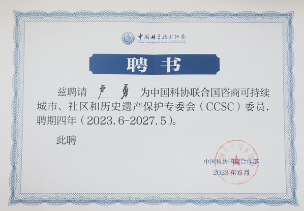 9月13日下午,我校人文与社会发展学院卢勇教授在北京召开的中国科协联合国咨商可持续城市、社区和历史遗产保护专业委员会(以下简称“专委会”)成立大会中被聘为历史遗产保护专业组委员。