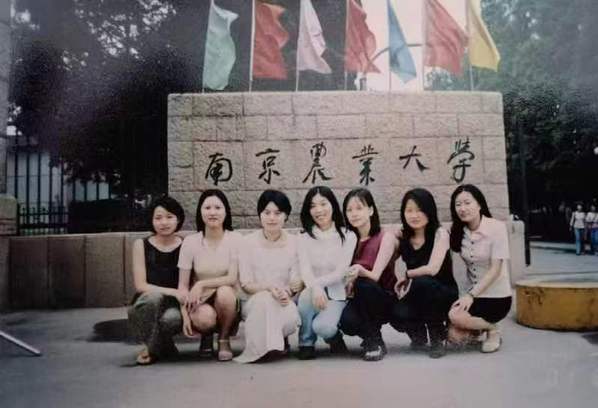 朱贝宁妈妈(左三)和舍友们在南农北门合影