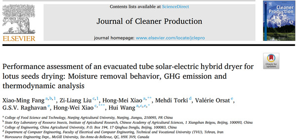 近日,我校食品科技学院肖红梅教授团队通过数字传感和精准能量识别技术和装备分析了农产品干燥过程的热力学(能、㶲),提出并量化了干燥过程的温室气体排放量(GHG)和节能潜力。相关工作在《Journal of Cleaner Production》和《Renewable and Sustainable Energy Reviews》上发表了题为“Performance assessment of an evacuated tube solar-electric hybrid dryer for lotus seeds drying: Moisture removal behavior, GHG emission and thermodynamic analysis”和“Analysis of exergetic performance for a combined ultrasonic power/convective hot air dryer”的研究性论文。