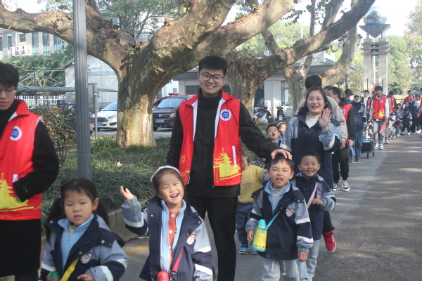 在老师和青协志愿者的组织下,小朋友们排着整齐的队伍走进ios版雷竞技官网浦口校区。志愿者和孩子们“大手牵小手”踏着落叶,感受秋天的宁静与充实,体悟自然带给我们的美好风光。在游览校园的过程中,小朋友们和哥哥姐姐一起捡落叶,将树叶拼凑成一幅幅画卷,留住秋天的回忆。