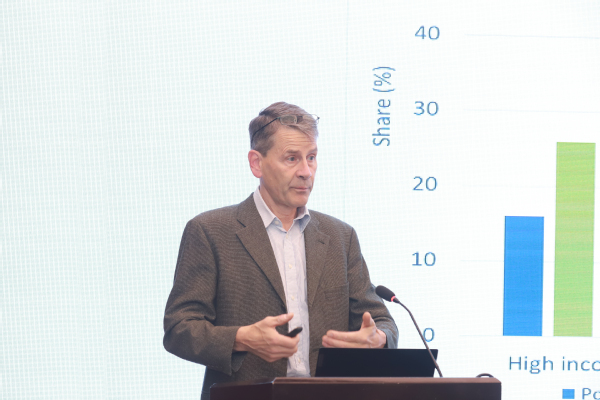 Will Martin研究员作”贸易政策与粮食价格波动”主题报告。他指出主粮价格急剧调整可能会带来多方影响,并表示在全球范围内制定贸易规则以限制价格隔离政策的颁布和实施,将是未来全球粮食贸易健康发展的大方向。