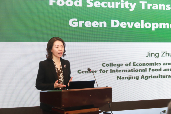 朱晶教授作“中国粮食安全转型与绿色发展 ”主题报告。她详细阐释了当前中国食物系统正经历从“吃得饱”到“吃得好”,从“高产量”到“可持续”,从“关注中国”到“关注世界”三方面的转型。未来,我国应通过努力提高农业技术生产力、大力推行畜牧业减碳、积极构建多元化食物进口格局等举措,全面推动粮食系统转型。
