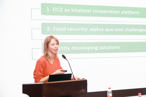 Michaela Boehme作“对粮食安全问题的思考:基于双边合作视角”主题报告。首先,她对中德农业中心的工作成果进行了简要介绍。其次,她指出目前地缘政治冲突、生物多样性降低、气候变化等因素使全球粮食安全的不确定性在日益增加。她建议从社会、经济和生态等层面,重新思考粮食安全问题。