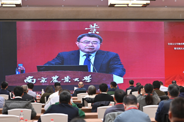 11月28日,由ios版雷竞技官网牵头成立的全国大豆生物育种产教融合创新联盟大会举行,来自全国76家高校、科研院所和企业的200多名参会代表相聚南京,紧扣国家“大豆振兴”计划,助力“卡脖子”技术攻关,共探大豆生物育种高水平科学研究、高层次人才培养和产业发展。