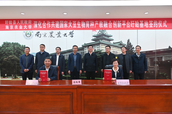会上,校地双方共同签订了“深化合作共建国家大豆生物育种产教融合创新平台”盱眙基地协议。考察交流期间,孙志标一行参观了作物遗传与种质创新全国重点实验室、国家信息农业工程技术中心、校史馆等。