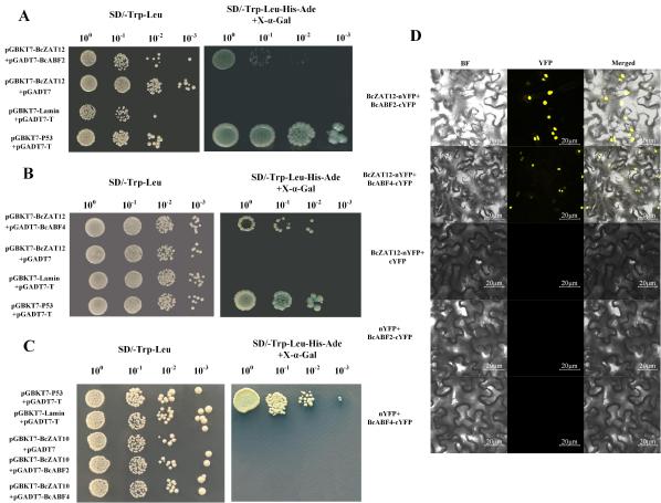 图4BcZAT12与BcABF2和BcABF4互作