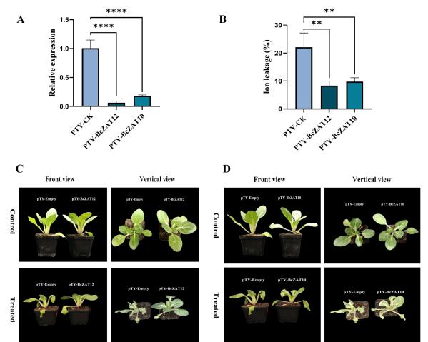 图2 VIGS诱导BcZAT12和BcZAT10沉默增强不结球白菜的耐寒性