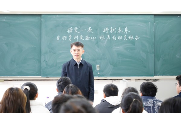 王春春就生物育种实验班的初建提出了班级建设方向的要求与指引。王春春指出,学校创建生物育种实验班,是对国家种业振兴方针的积极响应。2023年中央一号文件提出要全面实施生物育种重大项目,加快生物育种产业化步伐,学校高度重视生物育种实验班的建设,为国家输送知农爱农的生物育种方向青年人才。王春春勉励同学们牢记争先意识,树立远大目标,让奋斗成为青春的主旋律,让班集体走在全校学生的最前列。
