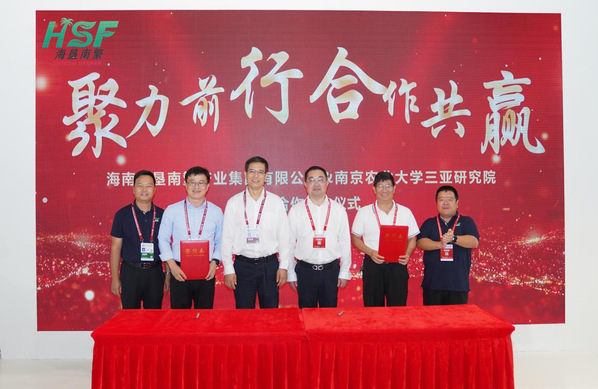 15日,在第26届海南冬季农产品交易博览会上,王源超出席三亚研究院与海南农垦南繁产业集团有限公司、海南省海洋与渔业科学院科技合作签约仪式,与海垦集团党委委员、副总经理周俊,海南省海洋与渔业科学院副院长陈傅晓分别签约。