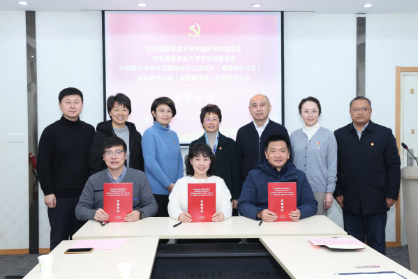 12月15日下午,外国语学院党委、农学院党委、国际合作与交流处(港澳台办公室)/国际教育学院(密西根学院)党总支在教学楼A310会议室举行党建共建仪式。校党委常委、副校长朱艳出席仪式,三个单位党组织负责同志、师生党员代表参加活动。