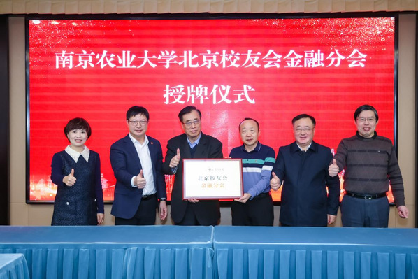大会为北京校友会金融分会会长张金华、秘书长彭海兰颁发聘书。张金华在表态发言中表示,南农金融学科历史悠久,培养了一大批高素质金融人才,活跃在北京地区的金融界校友是非常重要的代表。金融分会将发挥桥梁纽带作用,为加强校友联系提供平台,为助力母校发展建言献策。大会现场举行北京校友会金融分会揭牌仪式。