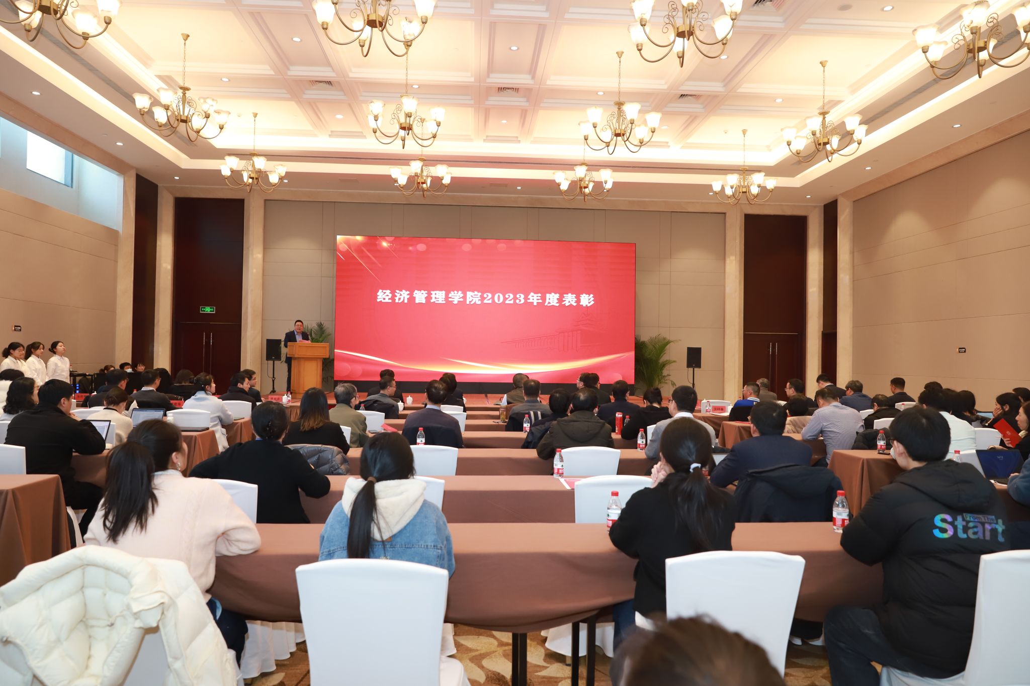 院党委书记孙雪峰宣读获奖师生名单。他表示, 2023年学院围绕党建创新、人才培养、科学研究、师资引育等方面工作,深耕发展、创新奋进,涌现出诸多师生荣誉与成绩。2024年,立足新起点、启航新征程,希望广大经管师生踔厉奋发、勇毅前行,继续谱写学院发展新篇章。