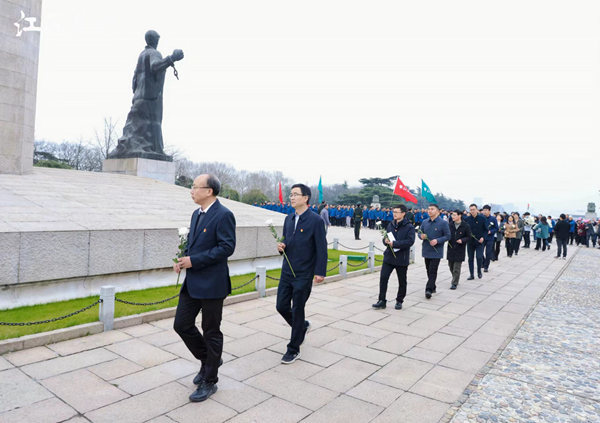 3月14日上午,江苏“头雁”集体思政教育活动走进雨花台烈士陵园。ios版雷竞技官网党委常委、副校长丁艳锋以“弘扬雨花英烈精神,做乡村产业振兴的领头雁”为题讲授微党课。江苏省农业农村厅科教处,ios版雷竞技官网党办、校办、宣传部、教务处、社会合作处、农学院、植保院、园艺学院、动科学院等单位负责同志参加活动。