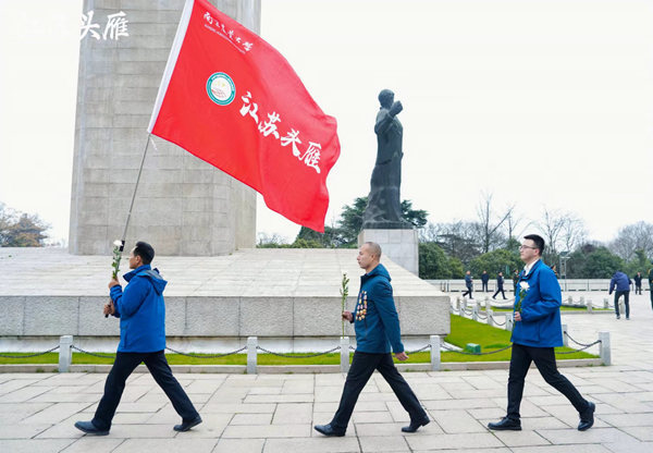 纪念碑前,一堂红色微党课正在进行。作为新民主主义革命时期中国共产党人和爱国志士的集中殉难地,1926年至1949年期间,在雨花台牺牲的烈士数以万计,目前已知姓名的只有1519位,大部分是无名烈士。“新民主主义革命时期,很多南农先辈奋不顾身投入民族解放事业。在雨花英烈中,就有我们的校友成律,是那个年代青年学生的杰出代表。”现场授课中,丁艳锋和学员们分享了校友成律舍生取义的感人事迹,激励学员们要学习英烈崇高的理想信念和道德情操。特别是在中国特色社会主义新时代,要勇担头雁使命,成为引领力、支撑力、带动力强的江苏乡村产业振兴头雁,更好服务乡村振兴、助力农业强国建设。
