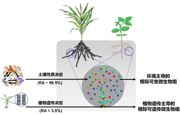 绝大部分根际微生物都是来源于土壤,因此过去认为根际微生物组整体上受土壤环境因素驱动,然而近年来随着根际微生物组研究的突破性进展,越来越多的研究表明部分根际微生物的装配是植物遗传性状。近日,国际著名期刊《新植物学家》(New Phytologist)在线发表了沈其荣院士团队张瑞福教授课题组与中国农业科学院农业资源与农业区划研究所合作的观点综述(Viewpoint)“Dissection of rhizosphere microbiome and exploiting strategies for sustainable agriculture”,该观点综述以分类利用为导向,根据装配的主要驱动因素将根际微生物组分为由土壤性质决定的根际可变微生物组(environment-dominated variable microbiome)和由植物基因决定的根际可遗传微生物组(plant genetic-dominated heritable microbiome)(图1)。