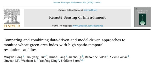 近日,ios版雷竞技官网前沿交叉研究院刘守阳和Fred团队在遥感领域国际顶级期刊Remote Sensing of Environment发表了题为“Comparing and combining data-driven and model-driven approaches to monitor wheat green area index with high spatio-temporal resolution satellites”的研究论文。本研究基于高时空分辨率卫星PlanetScope,提出了联合三维模型驱动与大数据驱动的集成模型,实现了跨地区、大规模、高频率的小麦叶面积指数(GAI)动态精准监测,为加速高产品种选育、优化精细栽培管理提供重要技术支撑。本研究模型和数据已公开:https://github.com/PheniX-Lab/3DRTM-PlanetScope-GAI