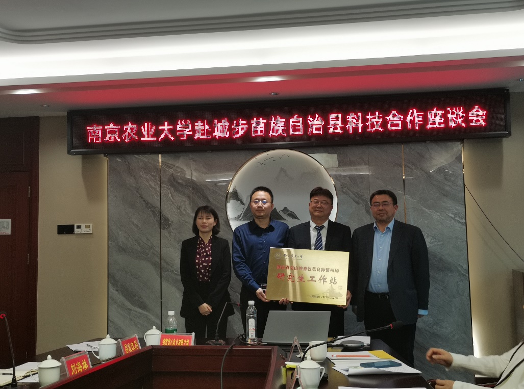 4月11日,副校长董维春带队赴湖南南山牧场,对“南方草牧业可持续发展技术创新中心”成立三年来的工作情况和南山基地建设进展进行考察。城步苗族自治县县委副书记、县长王慧敏,邵阳市科技局副局长张琼,南山牧场党委书记、场长徐建国,副县长刘海林和南山牧业有限公司董事长姚慧等出席座谈会。