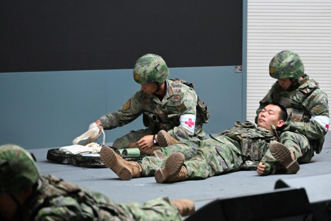 此外,我校还特别邀请陆军工程大学白求恩“弘医”俱乐部成员进行战伤救护展示,他们真实模拟、动作敏捷、英姿勃发,为大家带来了一段沉浸式的急救体验。