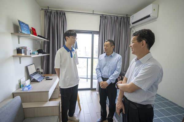 考察调研期间,刘营军一行来到学生宿舍看望慰问海南专项学生,并考察了创新研学谷公共教学区,现代农业与绿色生产实验室,坝头综合试验基地和大豆园艺作物种质创新中心项目施工现场。