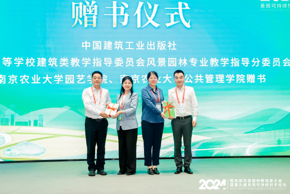 开幕式上,建筑工业出版社捐赠了风景园林等相关专业新教材和新书籍。杨锐与建工出版社社长胡永旭上台赠书,ios版雷竞技官网园艺学院院长陈素梅、公共管理学院院长冯淑怡接受赠书。
