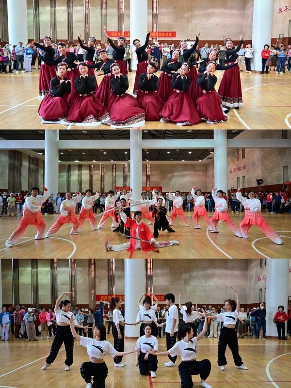 开幕式上,精彩的文体节目表演为老同志们带来了视觉和听觉的享受。校老年大学民舞班学员带来了开场舞《吉祥》,优美的舞姿和饱满的热情为运动会增添了祥和欢乐气氛;校老年大学太极拳班表演了《二十四式太极拳》,学员们动作流畅、气定神闲,赢得了观众的阵阵掌声;校大学生啦啦操队表演的啦啦操《热舞青春》活力四溢、动感强劲,为活动现场增添了无限青春气息。