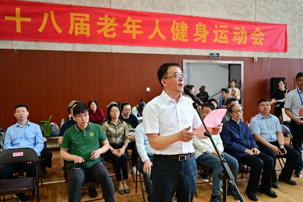 5月18日,我校举办第十八届老年人健身运动会。校党委常委吴群教授出席开幕式,老年运动员、裁判员、各单位负责人、老年体协负责人、表演队员等六百多人参加开幕式。