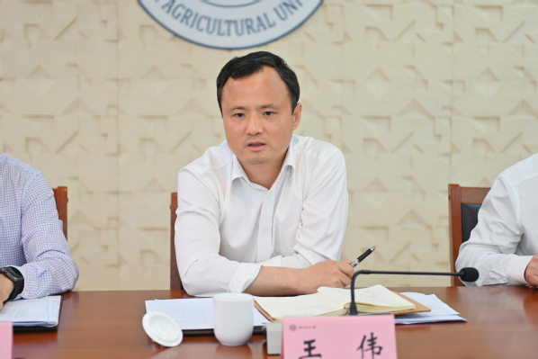 王伟在讲话中对学校的办学特色和办学成果予以高度评价。他指出,江北新区近年来牢牢把握高质量发展这个首要任务,坚定履行国家级新区定位使命,深入实施创新驱动发展战略,正加快聚力打造具有全球影响力的产业科技创新中心先导区,奋力展现“走在前、做示范”的责任担当。新区高度重视并持续关注南农滨江校区项目的进展和发展,希望校地双方以南农滨江校区为纽带,进一步深化交流、拓展合作、携手共赢,不断促进教育链、人才链与产业链、创新链的有机衔接。江北新区将坚定不移地支持南农的教育事业,全面对接滨江校区在江北新区的各方面需求,全力以赴做好滨江校区建设和运转的各项条件保障,为学校发展提供支撑,共同为锻造新质生产力贡献更多力量,实现校地携手跨越式协同发展。