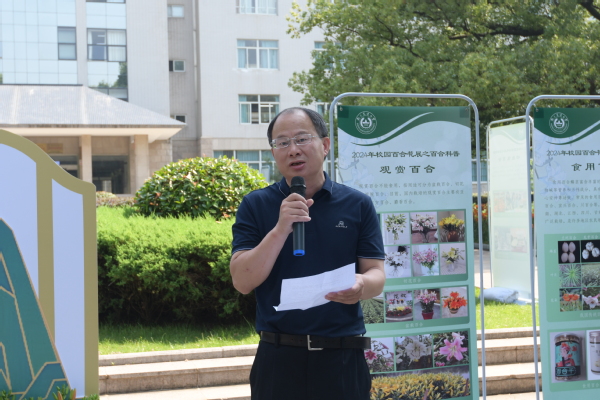 园艺学院、后勤保障处相关负责同志参加活动开幕式。园艺学院百合科研团队负责人滕年军在活动现场向大家详细介绍了百合团队科研成果及产业化情况。