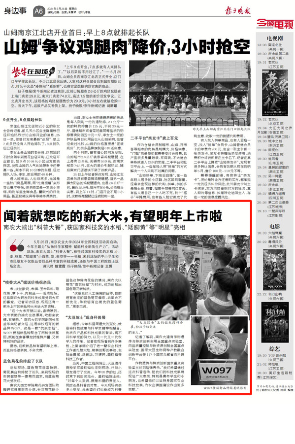 “这个大米开锅以后,香喷喷的,大米表面的油光也很漂亮,吃起来软糯,有嚼劲。” 南农大农学院副院长王益华向记者介绍,这是学校培育的新品种W097。这是一款“抗虫水稻”,W097粳稻新品种聚合了两种优质基因,既能在虫害爆发时维持产量,又有特别好的品质。