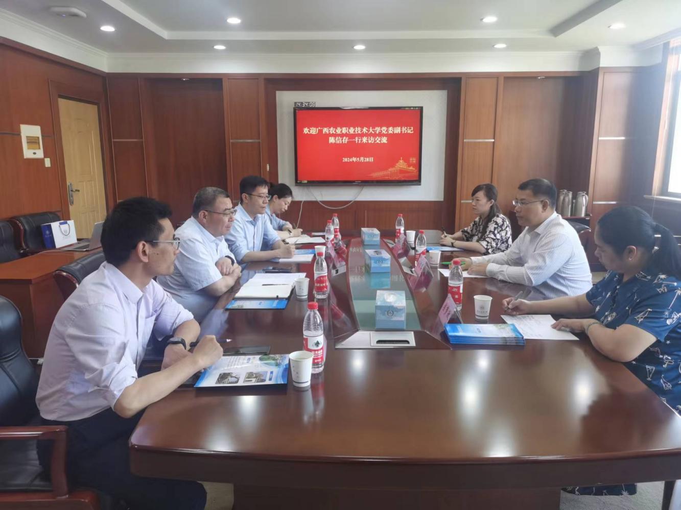 5月28日下午,广西农业职业技术大学党委副书记陈信存率队来我校调研交流。副校长董维春出席座谈会。