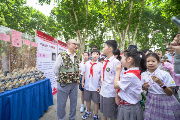 盖钧镒院士来到科普活动现场,并小朋友进行了交流。他说:“对每个人来讲,既是科普的责任人,同时还是科普的对象。今天现场有很多小朋友,我希望他们也能成为科普的主人。”有小朋友现场提问:“如何才能像盖爷爷一样?”盖钧镒院士亲切地说:“找一个工作,并坚持不懈地做下去。”