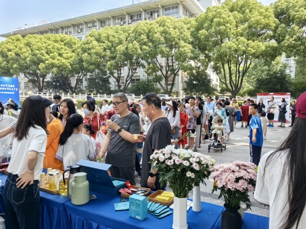 在教育部工程研究中心与南京科普作家协会的展台前,志愿者们向来往民众科普蔬菜相关知识、宣传科研新品种,并在会场随机发放蔬菜试种种子和种苗,让大众尤其是青少年有机会亲身体验蔬菜种植的乐趣;生物标本馆开展了题为“生物多样性 你我共参与”科普宣传活动,展示了100余份黄山野外实习植物标本及昆虫标本,介绍黄山动物、植物大型真菌的生物多样性,参观者可以亲自动手做一份专属自己的植物书签;中草药基地开展“认识中草药,动手做香囊”科普活动,展示30多盆中草药,参观者参与动手做香囊,碾压中药材,品尝石斛鲜饮;八卦洲百合基地的百合科普展,让师生深度了解功能性百合“可赏、可品、可食”的特色,展示了百合花艺、百合茶艺以及百合护肤品、百合酒等深加工产品,现场可以品尝百合、品鉴百合茶;杂草研究室志开展了“药食同源之仙草入膳”主题科普活动,介绍药食同源,设计了野菜食品试吃、野菜沙拉的现场制作以及互动答题等多个环节;肉品中心介绍了常见食品知识和原理,提供了食品科技成果的相关美食,包括培根、乳化肠、烧鸡、拉丝酸奶等食品,参观者门参观了肉制品加工中试车间、肉品品质分析实验室、肉品跟踪追溯物联网技术实验室等,了解了实验室进行肉制品研究和产品质量安全分析检测的设备和仪器;荷花睡莲基地举办荷和美美 幸福莲连’科普活动,瑰丽的荷花睡莲吸引了众多前来参观的中小学生及家长,介绍了莲子的生长过程和种藕的种植方法,现场品尝睡莲花茶,欣赏荷花睡莲标本和工艺品,共同体验了荷花文化的魅力。