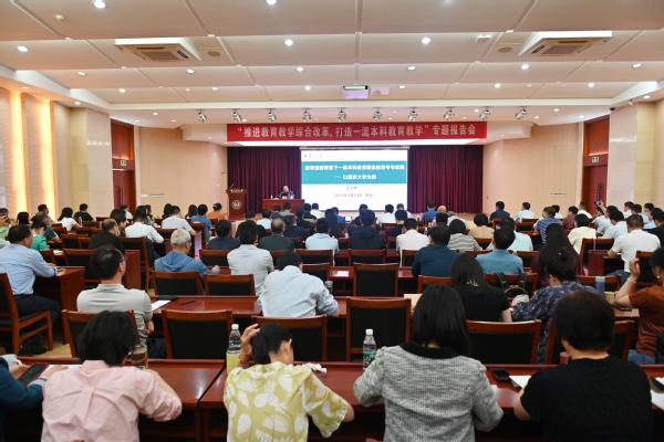 王志林教授围绕“教育强国背景下一流本科教育建设的思考与实践”中心思想、本质特征、基本要求和核心要义,从教育强国建设承担的使命、本科教育面临的挑战、南京大学本科教育教学思考和行动措施等维度,以丰富的理论知识和生动的实践案例,对一流本科教育教学建设进行了深刻的解读和全面的阐述,同时对高校持续推进教育教学综合改革提出了建设性的意见和建议。