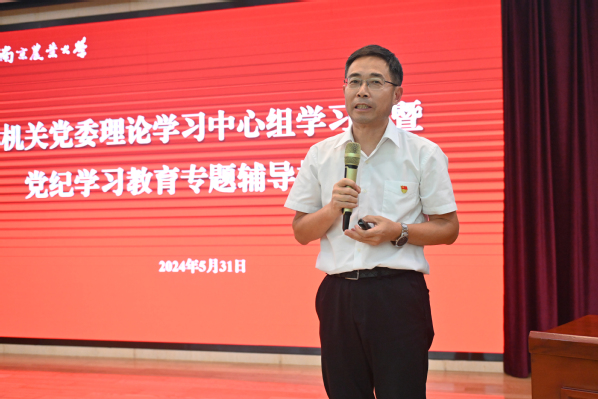 5月31日,机关党委举办雷竞技中心组学习会暨党纪学习教育专题辅导报告会,特邀南京航空航天大学党委副书记、纪委书记,南航廉洁教育研究中心主任杭育新作专题辅导报告。校党委常委吴群出席并主持报告会。