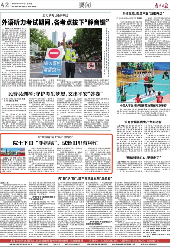 【南京日报】院士下田 “手插秧”, 试验田里育种忙 原文链接: