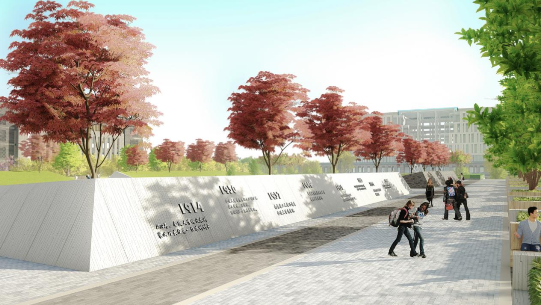 南大门内至图书馆南之间,位于三江路边。广场两侧拟设两条大理石立壁,石壁雕刻“农耕文明画卷”,西壁为“世界农耕文明”,东壁为“中华农耕文明”。