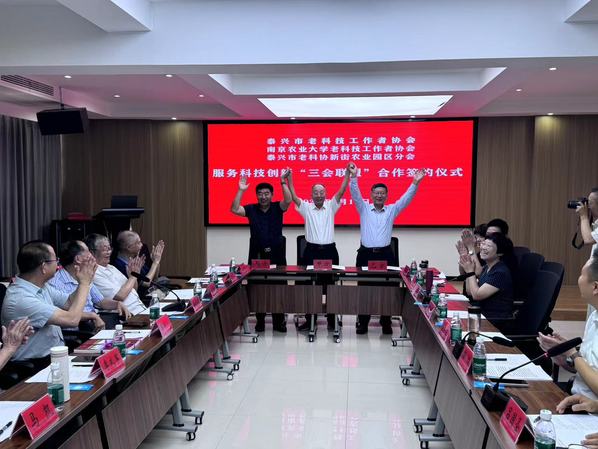 泰兴市老科技工作者协会、我校老科技工作者协会和泰兴市老科协新街农业园区分会举行了服务科技创新“三会联盟”合作签约仪式。泰兴市老科协副会长许咏诗、我校老科技工作者协会会长王庆亚、新街镇农业农村局局长薛群分别代表签约单位发言,共同回顾了在农业产业园区科技服务过程中结下的深厚友谊和取得的丰硕成果,对新一轮科技服务签约合作充满信心,并畅谈了服务需求与合作方式。