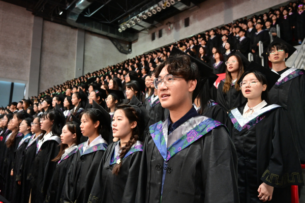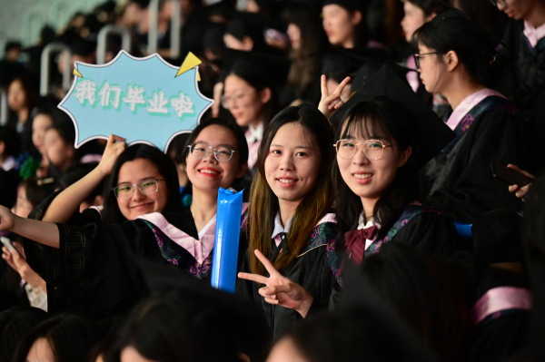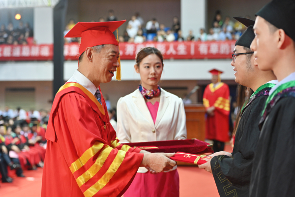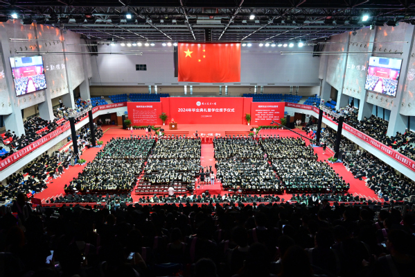 在学位授予仪式上,校领导为全体毕业生扶正流苏,授予学位。4360名2024届本科毕业生从母校扬帆起航。