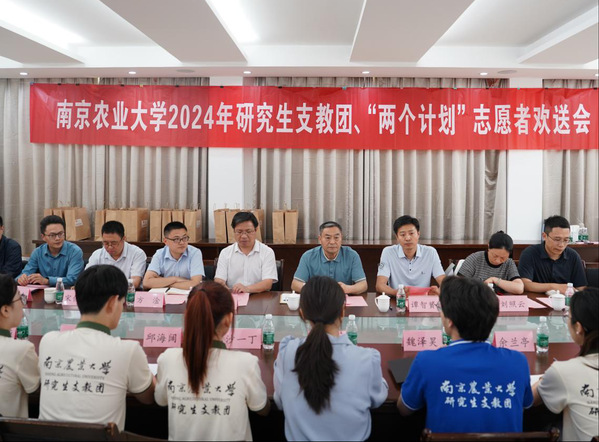 欢送会上,第24届研究生支教团团长魏泽昊、2023年江苏大学生志愿服务乡村振兴计划志愿者代表施毅涵分别分享了在服务地的工作经验、心得体会等。参会师生进行了热烈的交流讨论,志愿者们对学校多年来的悉心培养表示感谢,他们分享了自己选择志愿服务的初心,并结合自身成长情况和服务地工作实际,针对当前面临的挑战热烈讨论,展现了他们要将汗水和知识洒在祖国大地、将青春融入志愿服务的勇气和决心,用实际行动诠释南农青年的责任与担当。与会老师们表示,学校将永远是大家坚强的后盾,期待志愿者们在基层服务和乡村教育振兴当中发扬“诚朴勤仁”的南农精神、凝聚善作善成的奋进力量,在西部和江苏基层续写南农青年的新华章。