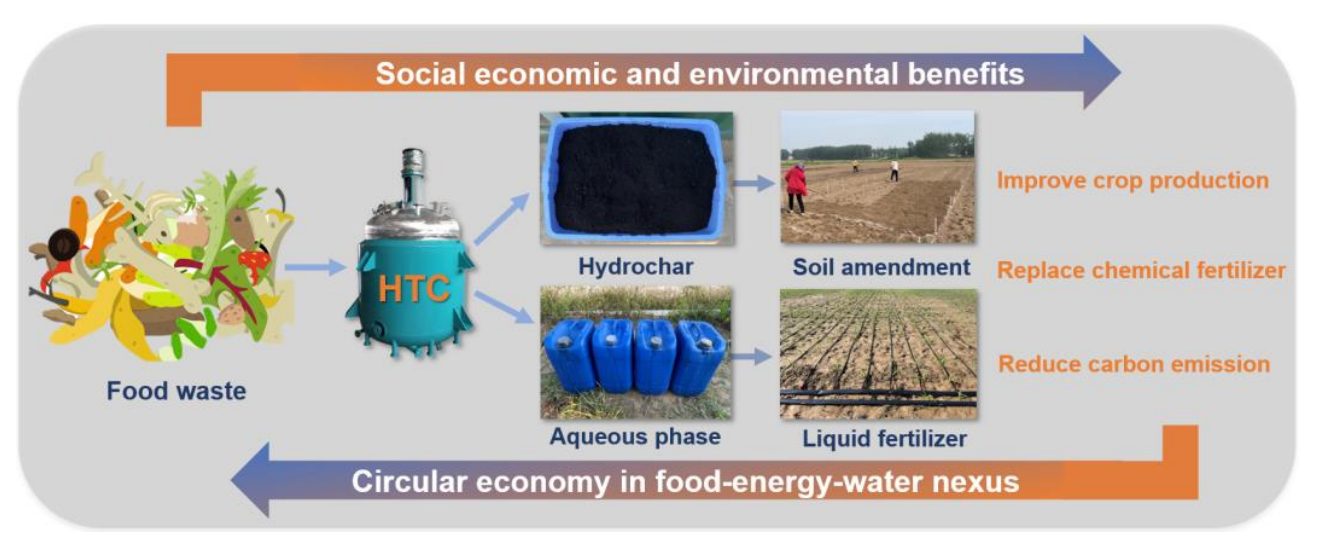 在推动食物-能源-水系统循环经济方面,厨余垃圾HTC产物在农业上的循环利用被认为具有巨大潜力。然而,由于缺乏面向生产应用尺度的研究,国内外对HTC规模化处理厨余垃圾的工艺流程、产物还田对作物生长和产量的影响、可能产生的生态环境效应以及经济可行性并不清楚。