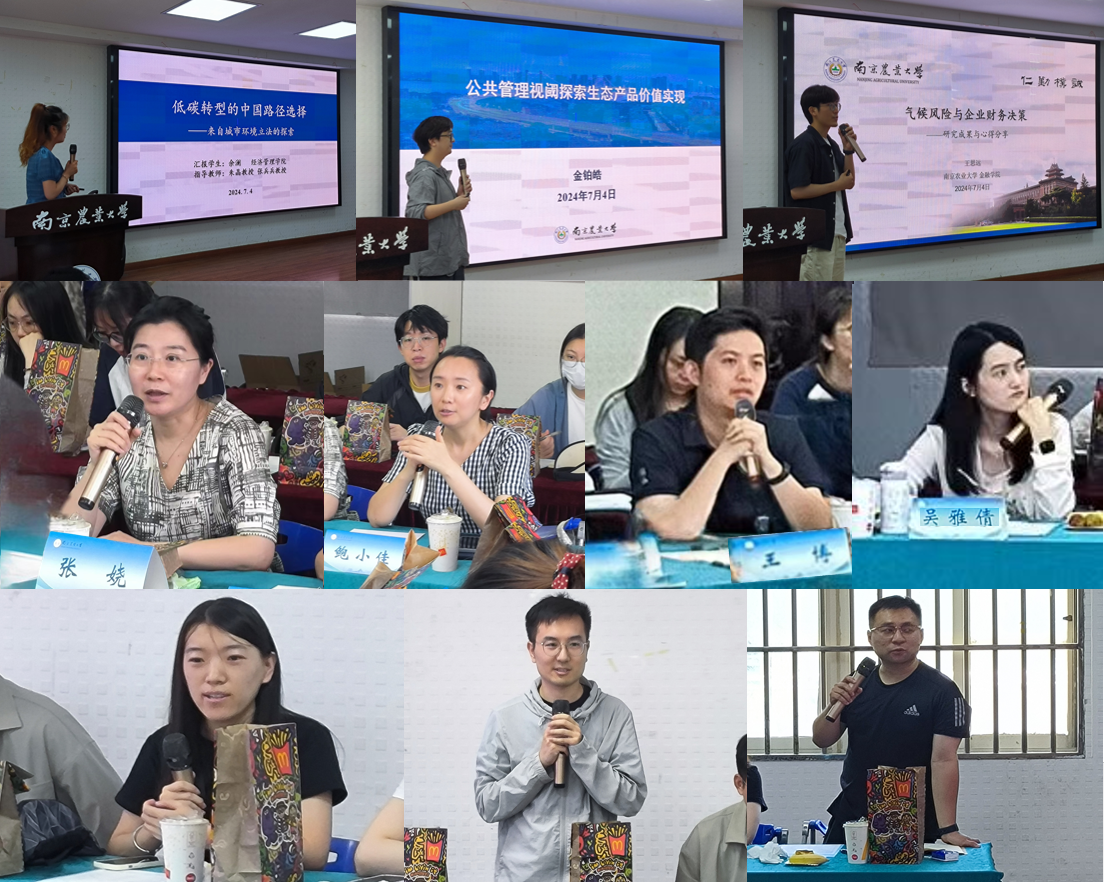 午餐会特邀经济管理学院博士研究生国家奖学金获得者、江苏省“三好学生”余澜同学、公共管理学院博士研究生国家奖学金获得者、清华大学博士论文奖学金获得者金铂皓同学和金融学院王思远同学分享最新科研成果及学术心得。余澜同学以《低碳转型的中国路径选择--来自城市环境立法的探索》为题,深入探讨了中国城市在低碳转型中的环境立法措施,并分析了这些措施对低碳经济发展的影响。金铂皓同学的报告题目为《公共管理视阈下的生态产品价值实现》,他从公共管理的角度,详细解释了生态资产到生态资本的价值实现过程,并指出这是一个集体行动的问题。王思远同学的研究聚焦于《气候变化风险与企业财务决策》,他重点分析了气候变化风险对企业财务决策的影响。与会领导、老师、各学院博士生们与3位分享嘉宾开展了互动交流。