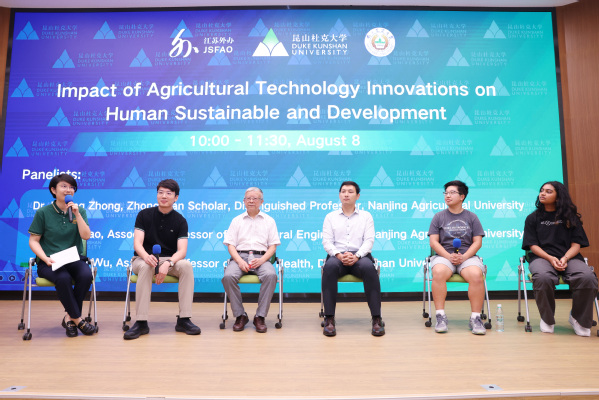 小组讨论环节,来自ios版雷竞技官网和昆山杜克大学的三位专家,与美国两名大学生发表了各自的见解,并与台下师生进行热烈讨论。ios版雷竞技官网工学院高帅副教授表示,近年来中国农业机械化智能化发展取得显著成效,南农在无人机和人工智能领域的创新成果助农惠民,期待未来中美开展更加广泛的交流合作。昆山杜克大学的吴晨凯博士希望中美两国在健康、粮食安全和气候变化等共同关心的领域建立有效合作机制,加强相互交流,通过吸引外部资金支持,引领全球科研发展。