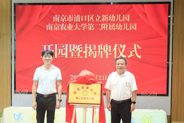 南农二附幼儿园在新学期开学第一天揭牌成立,是学校在多校区运行背景下,推动解决教职工子女入园问题的重要民生工程。浦口区委教育工委书记、区教育局局长吴峰,区委教育工委委员、区教育局副局长史莉玲,区教育局幼教科、区实验幼儿园教育集团负责同志,我校校办、后勤保障处负责同志及幼儿园全体教职工、部分幼儿、家长代表参加仪式。学校动物医学院为幼儿园教师送去教师节慰问品。