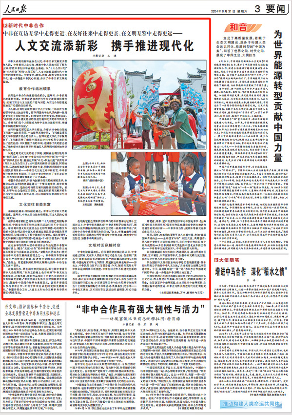 【人民日报】人文交流添新彩 携手推进现代化(新时代中非合作)