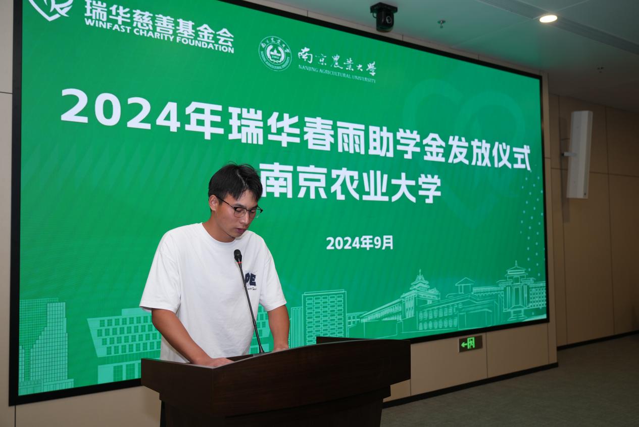 受资助新生代表王福临、杨阿凤同学分别发言,表示将不辜负学校和基金会的期望,将感恩之心化作前进的动力。
