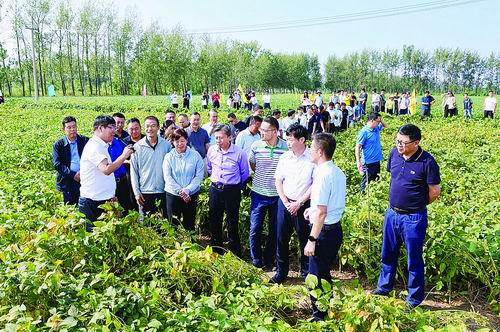 近日,在大豆大面积单产提升示范观摩会的现场,来自高校、科研院所、企业的百余名专家学者实地查看大豆喜人长势,研讨大豆增产良种良法。